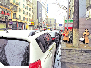 近日,記者在安康城區(qū)觀察發(fā)現(xiàn),大橋路、東大街、江北大道、育才路等路段,機(jī)動車占道現(xiàn)象非常嚴(yán)重,公交車停靠站的車位被私家車隨意占用,導(dǎo)致公交車無法進(jìn)站,只能??吭谥鞲傻郎希诵械烂さ酪脖卉囕v堵塞,不僅影響道路交通、市容市貌,還存在安全隱患,給市民出行帶來很大不便,希望相關(guān)部門加大整治力度。記者 寇峰 魏濤 攝?