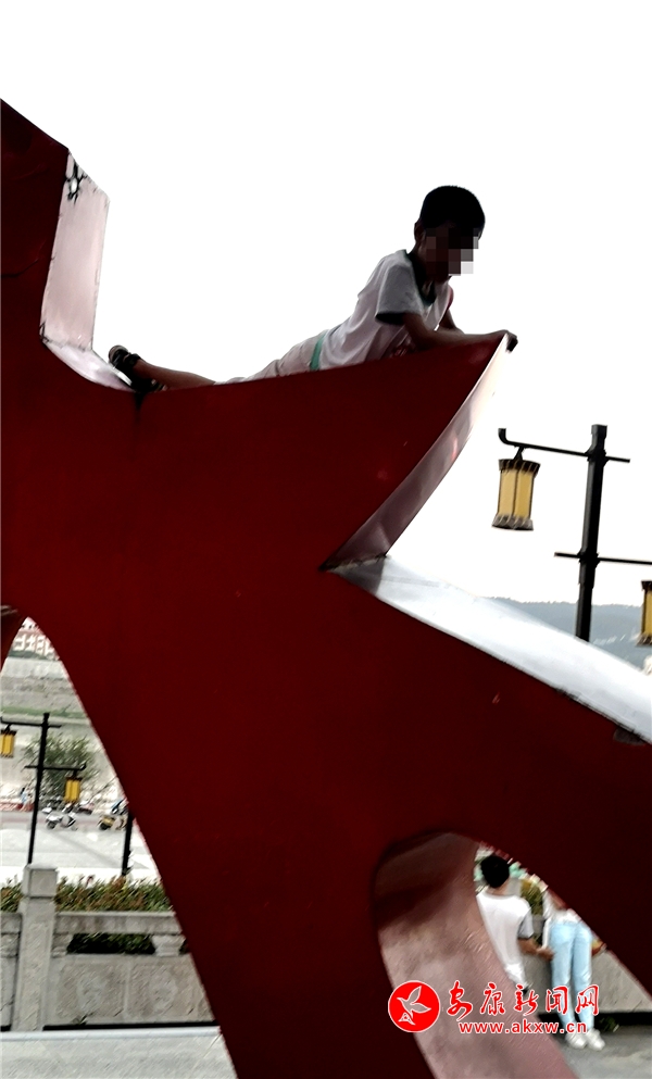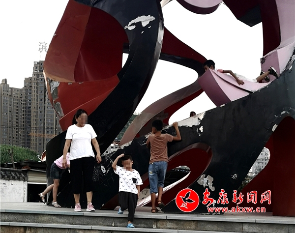 近日,記者在漢調(diào)二黃文化園看到,游玩的市民絡(luò)繹不絕,大部分市民都能做到文明游園,但其中也存在不文明行為。這里是文化園主題雕塑,幾個10歲左右的小男孩不斷攀爬雕塑,并在離地面約2米的高處逗留,現(xiàn)場既無工作人員勸導也沒有“禁止攀爬”的相關(guān)提示牌。記者 潘潤生 攝