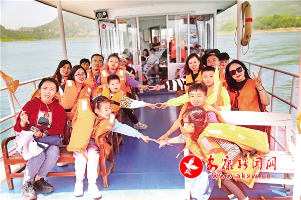 游客抵達瀛湖景區(qū),在工作人員的疏導(dǎo)下,有序登船,穿好救生衣后,向著碧波漣漪、白云萬里進發(fā),這樣游湖,就是一幅絕美的畫卷。