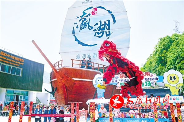 4月29日上午,來自西安的3歲小朋友汐汐在父母的陪同下為舞獅點睛,拉開了瀛湖舞獅迎客的精彩序幕。于是,在景區(qū)全域,游客都能與舞獅偶遇并親密接觸。漢服小姐姐帶來的優(yōu)美舞蹈也引得游客駐足觀看,魚燈巡游帶領(lǐng)游客與魚同游,彰顯了瀛湖親水的魅力。