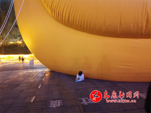 10月6日,漢江"大黃鴨"打卡點,出現(xiàn)了翻越圍欄,進入充氣氣球禁止區(qū)域的不文明旅游行為。(實習(xí)生 康研 王千龍)