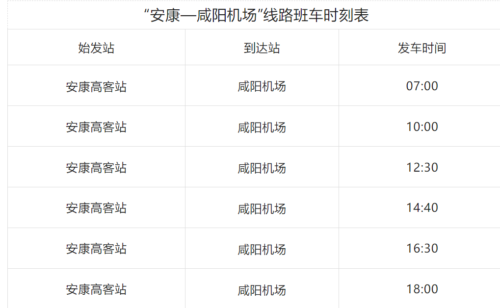明日起,“安康—咸陽機場”客運線路發(fā)車時間調(diào)整