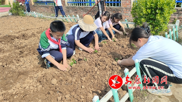 同學(xué)們?cè)谥笇?dǎo)老師的帶領(lǐng)下,帶著農(nóng)具,化身“小農(nóng)人”,挽起袖子,揮動(dòng)鋤頭,挖開泥土,平整土地,拔出雜草,植下蔬菜瓜果,個(gè)個(gè)忙得不亦樂(lè)乎。孩子們?cè)凇疤镩g”揮灑著汗水,在實(shí)踐中體驗(yàn)農(nóng)耕文化的魅力,感受辛勤耕耘的快樂(lè),培養(yǎng)熱愛勞動(dòng)的精神。通過(guò)春季勞動(dòng)教育種植實(shí)踐活動(dòng),學(xué)生們從課堂走進(jìn)自然,不僅培養(yǎng)了學(xué)生的勞動(dòng)技能,還為他們植入了生命教育。