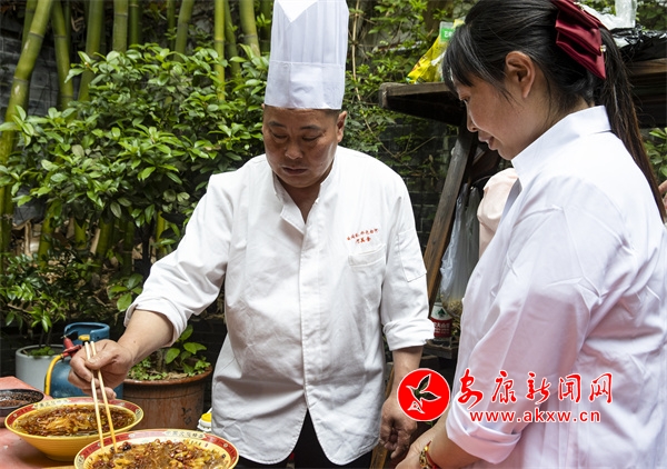 但隨著時代的發(fā)展,人們消費理念的更新,能制作傳統(tǒng)白河“三點水”宴席的人越來越少,偌大一個縣,找不出幾個能夠獨當一面制作傳統(tǒng)宴席白河“三點水”的廚師。所以他毅然決定辭去高薪的主廚工作,奔走于鄉(xiāng)村,上門做家政服務,在實地操作技藝中傳幫帶一批會制作白河“三點水”宴席的鄉(xiāng)廚。