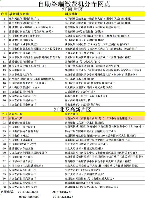 注意!安康天然氣可在以下網(wǎng)點進(jìn)行自助繳費