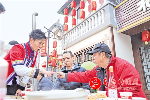 長街里的宴席上坐無缺席;一道道精美的庖湯佳肴陸續(xù)上場,席間,賓客們喝著美酒、品著美食、看著節(jié)目,歡聲笑語不斷。臺上的節(jié)目精彩紛呈,讓賓客們目不暇接,不時報以熱烈掌聲,充分展現(xiàn)了石泉縣深厚的文化底蘊(yùn)和獨(dú)特的民俗文化。不少外地游客慕名而來,帶著親友來到石泉,親身感受特色庖湯宴。豪邁的秦巴漢子激情劃拳喝酒,在場的游客市民都沉浸在新年的喜悅中,舉杯暢飲,現(xiàn)場熱鬧非凡,滿滿年味十里香飄……