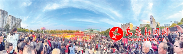 安康民俗講究正月十二“出燈”。傍晚時分,水西門外人頭攢動。群眾從四面八方陸續(xù)向廣場周圍匯集,共同觀看社火表演盛況。