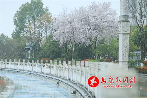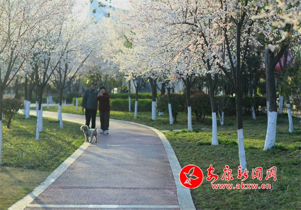 花朵盛開(kāi),柳樹(shù)垂絲,遠(yuǎn)處的城市建筑若隱若現(xiàn)。人們?cè)诮吢?、休憩,享受著春日里的美好時(shí)光。此時(shí)的畫(huà)面將現(xiàn)代文明與自然生態(tài)完美融合,讓人感受到城市中一抹特有的清新與寧?kù)o。