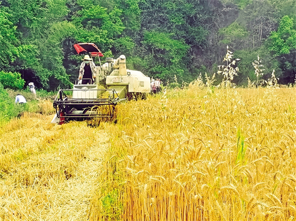 風(fēng)吹麥田千層浪,又到一年收獲時(shí)。在漢濱區(qū)晏壩鎮(zhèn)中心社區(qū)安康客意然農(nóng)業(yè)開發(fā)有限公司種植園區(qū)內(nèi),小麥在陽(yáng)光的照耀下,閃著金燦燦的光芒,沉甸甸的麥穗隨風(fēng)搖曳,發(fā)出“沙沙”聲響。收割機(jī)正馬力全開,在金色麥浪中來回穿梭,伴隨著陣陣轟鳴聲,小麥從機(jī)艙中傾瀉而出,顆顆金黃、粒粒飽滿,裝滿車輛,整個(gè)過程一氣呵成,高效而精準(zhǔn)。