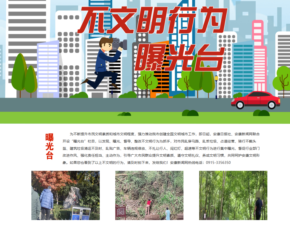 安康新聞網(wǎng)繼續(xù)充分發(fā)揮輿情監(jiān)測(cè)和輿論監(jiān)督作用,以高度負(fù)責(zé)的態(tài)度,及時(shí)監(jiān)測(cè)上報(bào)重大輿情信息。開(kāi)設(shè)《不文明行為曝光臺(tái)》輿論監(jiān)督專欄,集中曝光身邊的不文明現(xiàn)象、行為,發(fā)布消息報(bào)道19篇,引導(dǎo)市民群眾自覺(jué)規(guī)范文明行為,主動(dòng)融入城市文明創(chuàng)建熱潮,為提升市民文明素質(zhì)和城市文明程度貢獻(xiàn)媒體力量,體現(xiàn)地方黨媒的責(zé)任與擔(dān)當(dāng)。