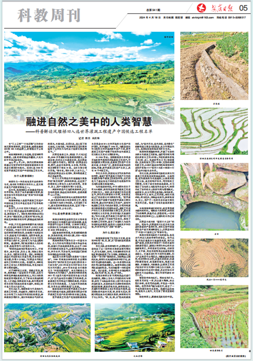 (2024年4月18日安康日?qǐng)?bào)05版“融進(jìn)自然之美中的人類(lèi)智慧——科普解讀鳳堰梯田入選世界灌溉工程遺產(chǎn)中國(guó)候選工程名單”)