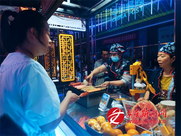 在三星街夜市攤點(diǎn),攤主們熱情地吆喝聲此起彼伏??爵~、燒肉等美食在燈光映照下散發(fā)著誘人光澤。燒烤店內(nèi)食客圍桌而坐,享受著美食與歡聲笑語交織的歡樂時(shí)光。來自西安的游客楊斌品嘗著美食,贊嘆道:“這里的夜市文化濃郁,地方特色獨(dú)特,讓我深切感受到了寧陜?nèi)说臒崆楹每?。?/p>