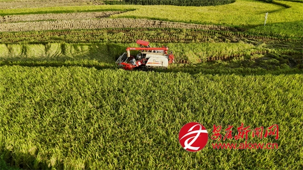 本網(wǎng)訊(通訊員 方亮 劉東)當(dāng)前正值水稻收獲的季節(jié),9月8日天氣轉(zhuǎn)晴,漢陰縣平梁鎮(zhèn)新河村的稻田里迅速熱鬧起來。村民們搶抓這一關(guān)鍵窗口期,以“機械化收割+傳統(tǒng)勞作”相結(jié)合的方式全力搶收,在連片金黃的稻田中,勾勒出一幅生動的秋日“豐”景圖。