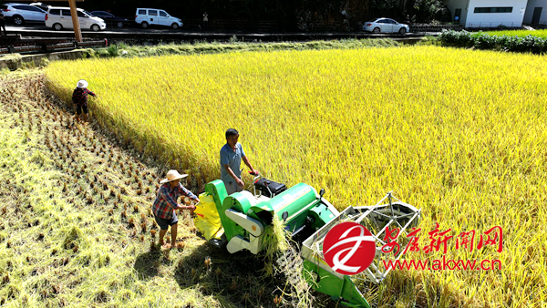 村民在金黃的稻田里收割水稻 楊穩(wěn)攝