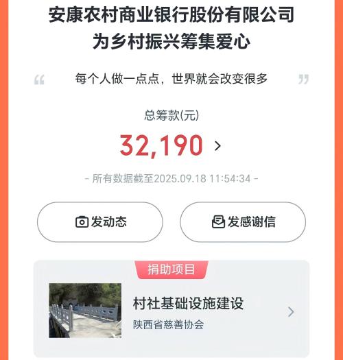 凝聚慈善力量,助推共同富裕?!耙蝗站琛被顒釉陉兾鬓r(nóng)信安康農(nóng)商銀行已持續(xù)開展7年,該項活動已成為陜西農(nóng)信安康農(nóng)商銀行踐行社會責(zé)任的一項實際行動,更是“大愛農(nóng)信”企業(yè)文化的有效載體。