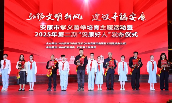 本次活動以“弘揚文明新風 建設幸福安康”為主題,由市委宣傳部主辦、石泉縣委和縣政府承辦,旨在深入學習貫徹黨的二十屆四中全會精神,扎實推進崇德向上幸福安康建設?;顒蝇F(xiàn)場,通過播放典型人物短片、現(xiàn)場互動訪談等形式,生動再現(xiàn)了陳登發(fā)、高虎、黃壽琴等好人代表的感人事跡。市級領導及“中國好人”“陜西好人”等先進典型代表為28名新入選的“安康好人”頒發(fā)紀念證書。活動現(xiàn)場同時發(fā)布了2025年安康市“新時代好少年”名單,24名青少年獲得殊榮。