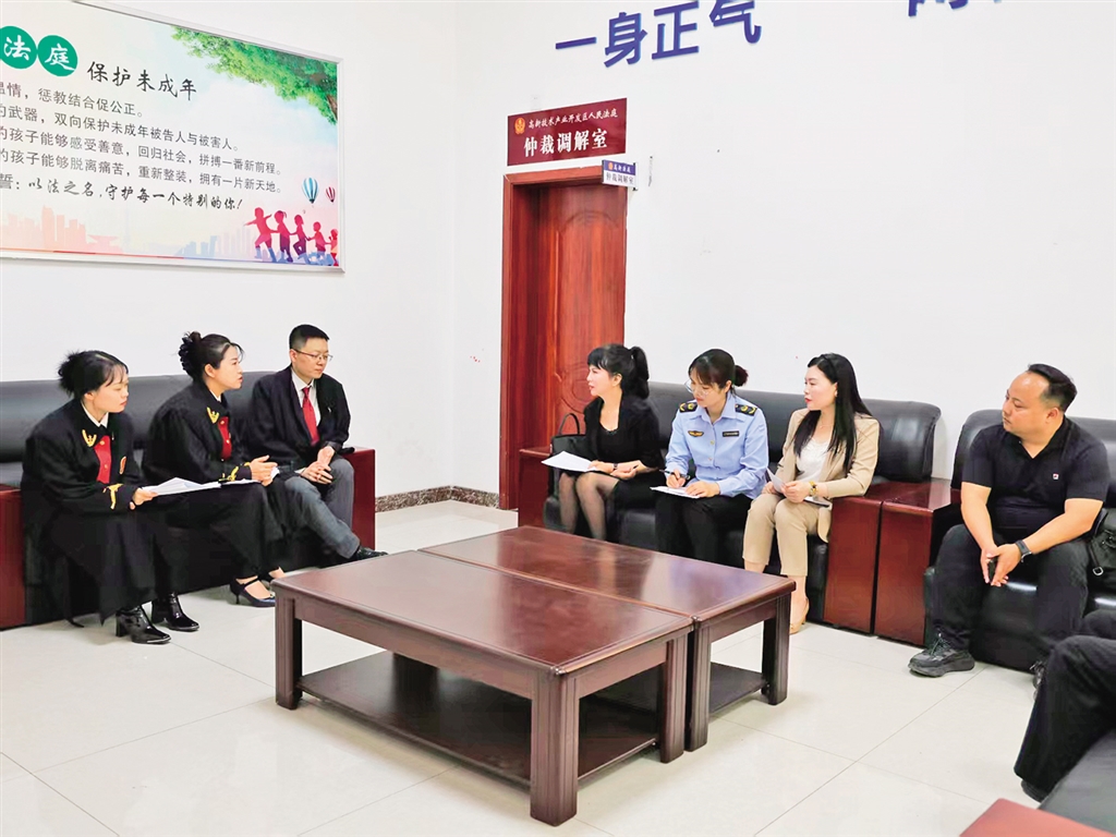 高新法庭特邀人大代表、政協委員、市場監(jiān)管工作人員及科創(chuàng)園企業(yè)代表走進法庭,聯合開展調解工作。趙永佳 攝