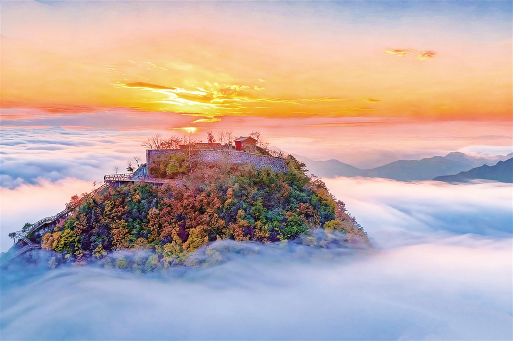 清晨的嵐皋縣全勝寨晨霧如浪,引人入勝。