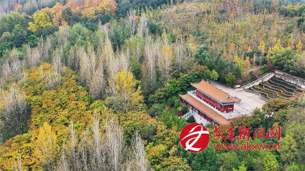 初冬時(shí)節(jié),漢陰的龍崗公園內(nèi)外層林盡染,與人文景觀交相輝映,構(gòu)成一幅流動(dòng)的山水畫卷。公園地勢(shì)連綿,園內(nèi)步道蜿蜒,亭臺(tái)錯(cuò)落。從空中望去,茂密的林木披上了紅、黃、橙交織的花衣裳,與常綠樹種相互點(diǎn)綴,猶如大地的調(diào)色盤。山頂?shù)凝垗忛w巍然屹立,在金黃烏柏與如火楓葉的簇?fù)碇?,成為整個(gè)公園的視覺焦點(diǎn)。登閣遠(yuǎn)望,漢陰縣城全貌盡收眼底,月河如帶穿城而過(guò),與秋日晴空共同勾勒出“水天一色”的壯美圖景。(通訊員 文婷 徐歡)