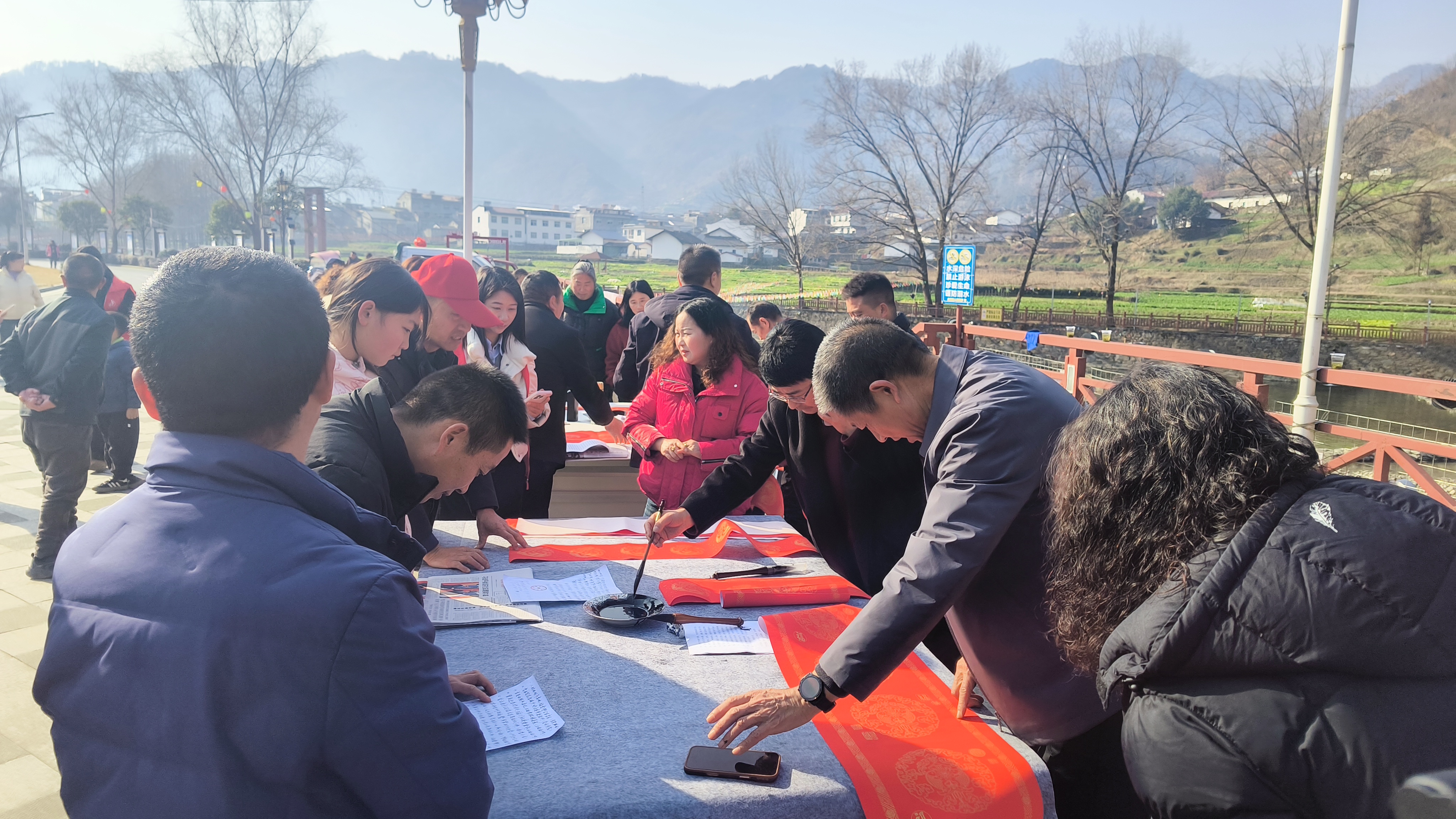 2月5日,平利縣文聯(lián)、書(shū)協(xié)聯(lián)合大貴鎮(zhèn)公共文化服務(wù)共同體分中心、新時(shí)代文明實(shí)踐所,在集鎮(zhèn)親水廣場(chǎng)開(kāi)展義寫春聯(lián)活動(dòng),以翰墨傳遞新春祝福,用文化賦能文明實(shí)踐。 陳青青 攝
