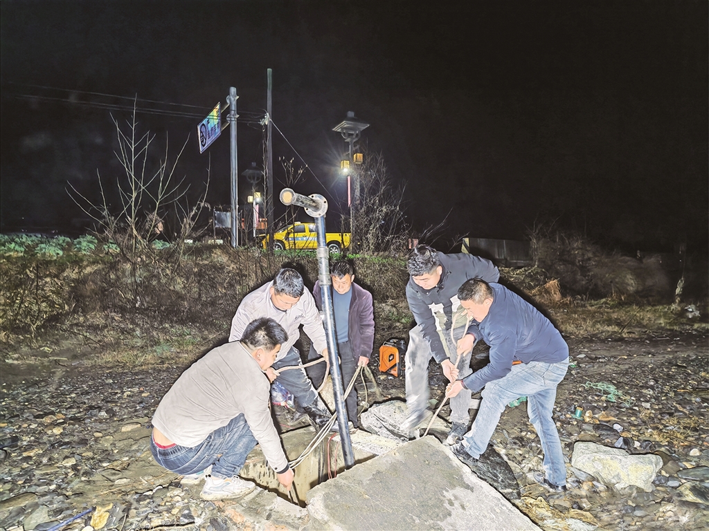 ⑨ 2月16日(除夕)凌晨,漢陰縣農(nóng)村供水有限責任公司工作人員連夜搶修水泵,保障雙河口鎮(zhèn)鳳柳村全村約1500人節(jié)日用水。王延濤 攝